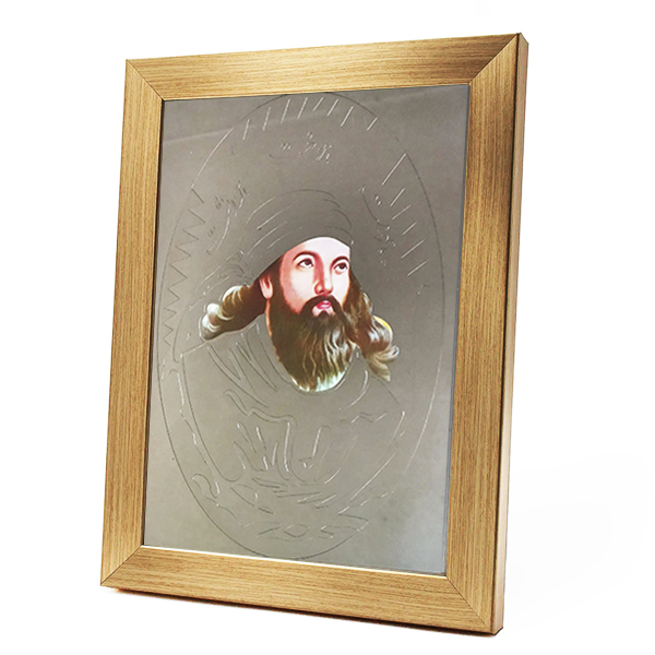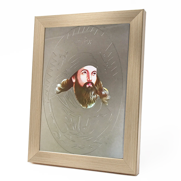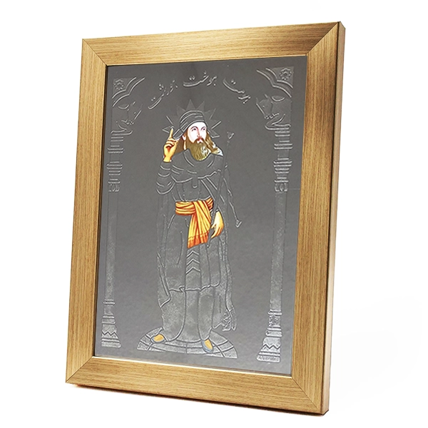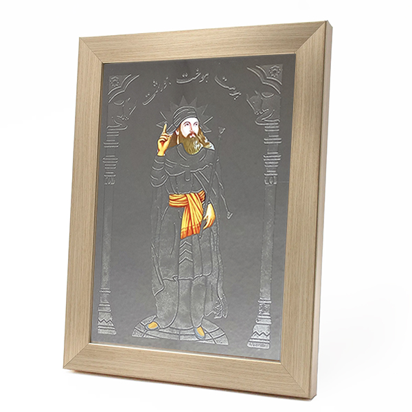 آیینه اشوزرتشت طرح برجسته در دو طرح چهره اشوزرتشت و اشوزرتشت ایستاده همراه با قاب