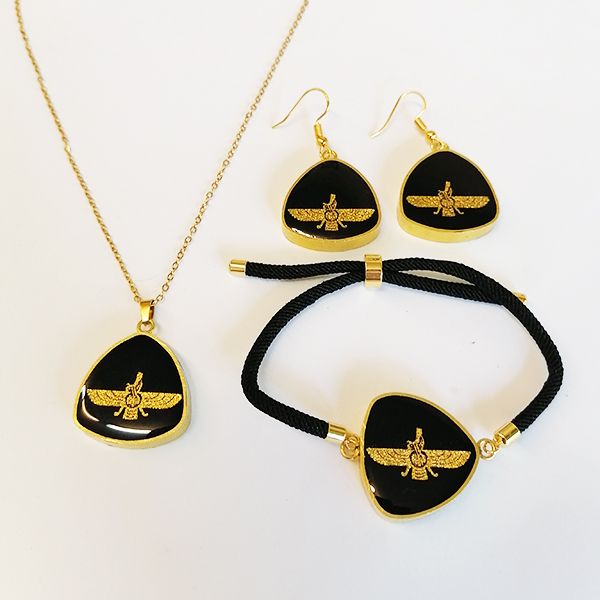 نیمست دستبند، گوشواره و گردنبند رزین با طرح فروهر